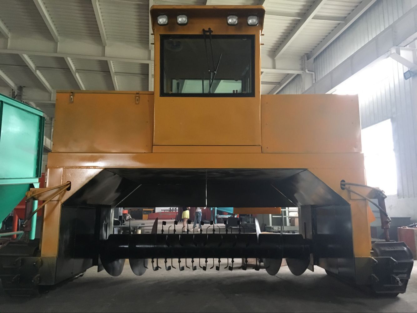 履帶式翻拋機(jī)在翻堆機(jī)翻拋機(jī)行業(yè)里,屬于大型翻拋機(jī)了。單單從外形也可以看出來它所具有的明顯的優(yōu)勢(shì),翻堆能力強(qiáng),產(chǎn)量大,適合大型有機(jī)肥廠使用。使用該設(shè)備,不僅僅可以全部輕松翻拋,而且可以把物料里的大塊進(jìn)行破碎。是有機(jī)物料耗氧發(fā)酵轉(zhuǎn)化成有機(jī)肥的專業(yè)翻拋設(shè)備。履帶式翻拋機(jī)軸高低可自動(dòng)升降,可根據(jù)物料水分的大小選擇強(qiáng)行翻堆,高速翻堆。大大節(jié)約了場(chǎng)地、時(shí)間、柴油、人力,提前了發(fā)酵期。